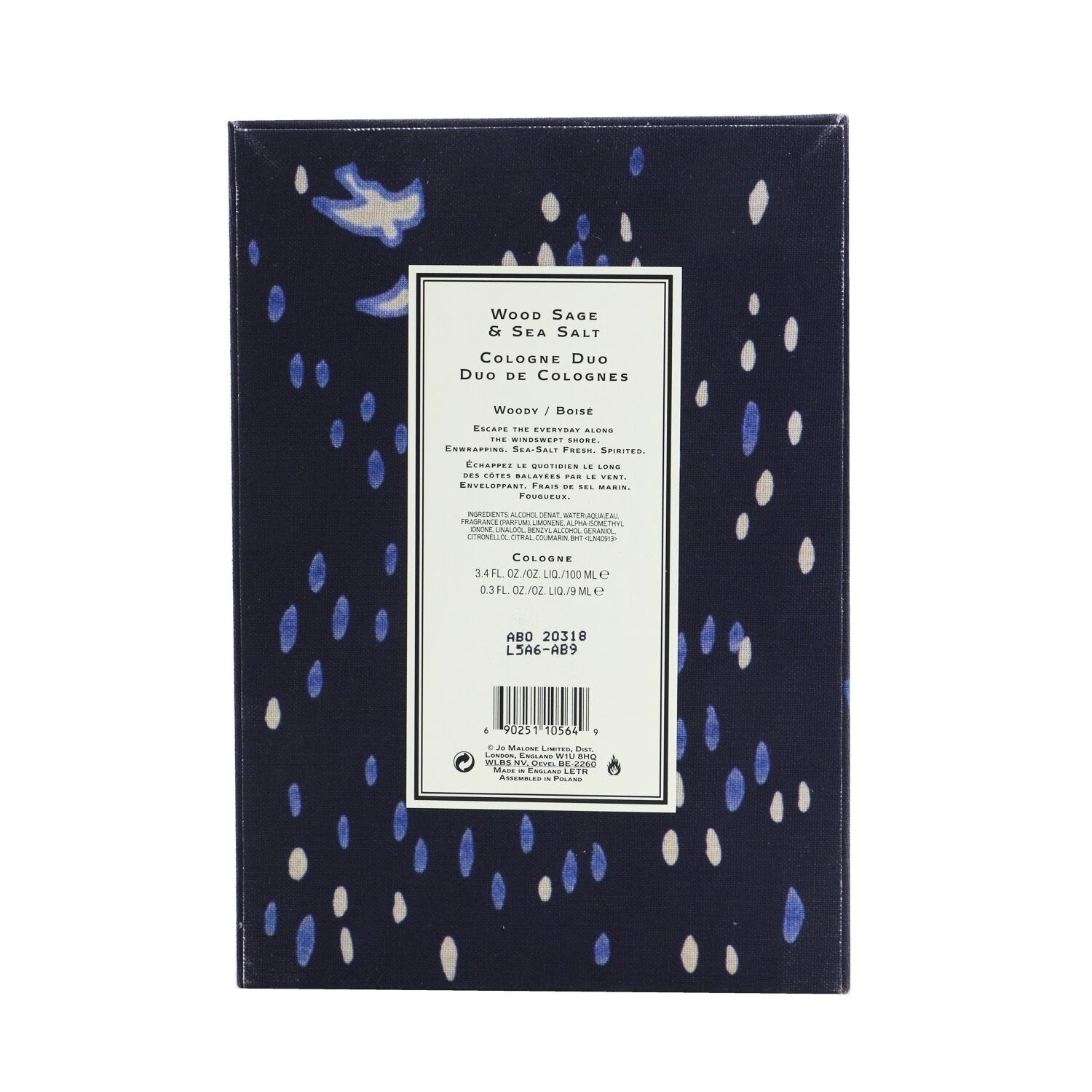 Wood Sage & Sea Salt Cologne Duo Coffret: Cologne Spray 100ml/3.4oz + Cologne Spray 9ml/0.3oz A marine aromatic fragrance for women & men Light, fresh, earthy, natural & soothing Contains notes of ambrette seed, sea salt, sage, red algae & grapefruit Launched in 2014 Suitable for day or warmer seasons wear Ideal both for personal use & as a gift