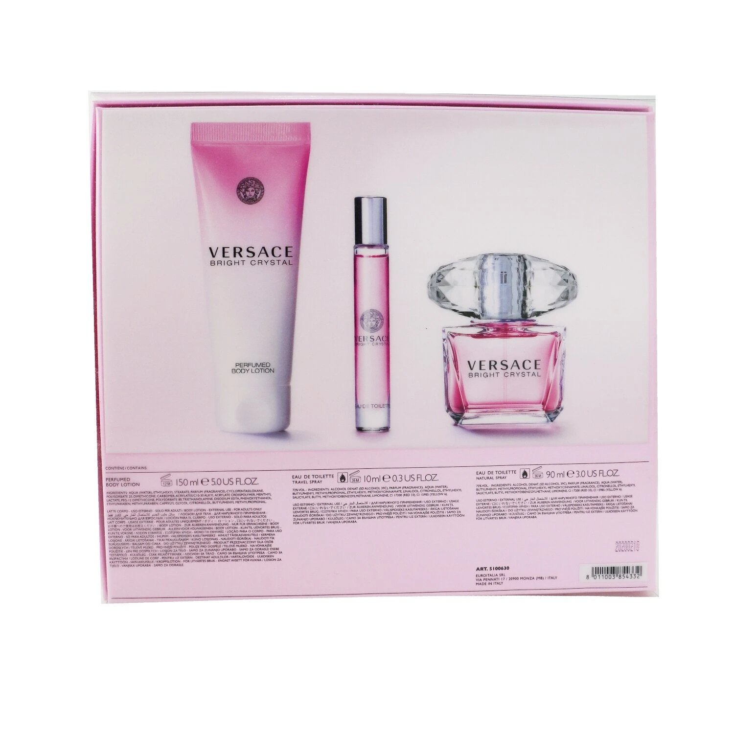 Versace Bright Crystal Coffret: Eau De Toilette Spray 90ml/3oz + Body Lotion 150ml/5oz + Eau De Toilette Spray 10ml/0.3oz 3pcs