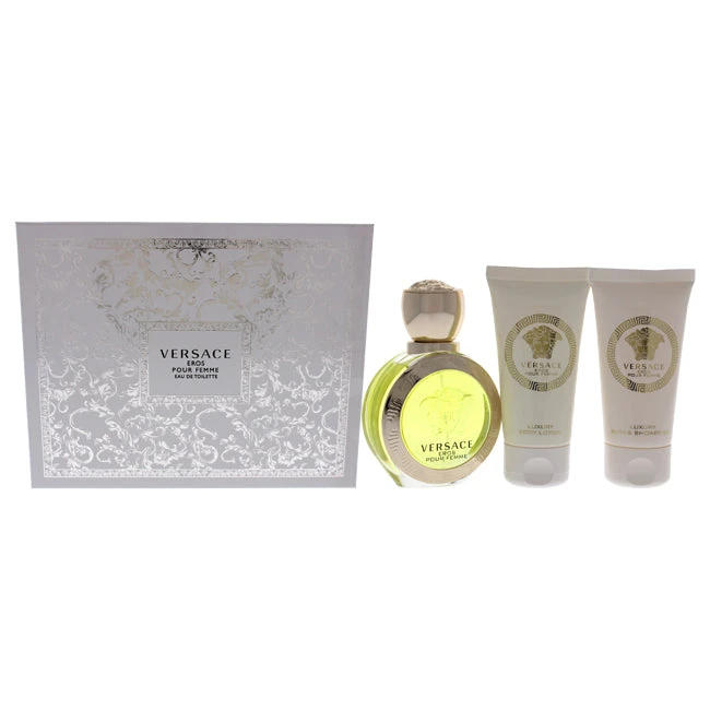 Versace Versace Eros Pour Femme By Versace For Women – 3 Pc Gift Set 1.7oz EDT Spray, 1.7oz Luxury Bath Shower Gel, 1.7oz Luxury Body Lotion