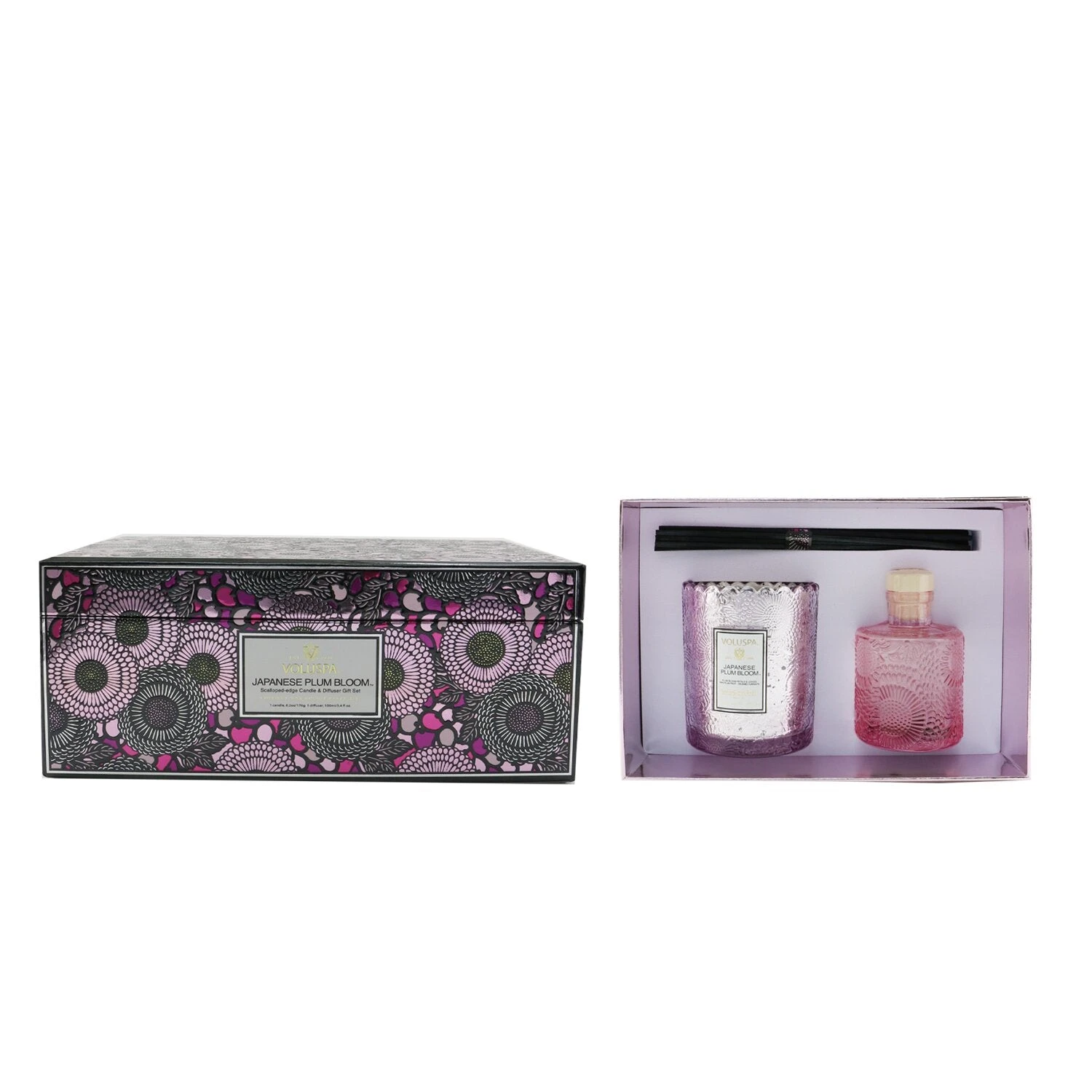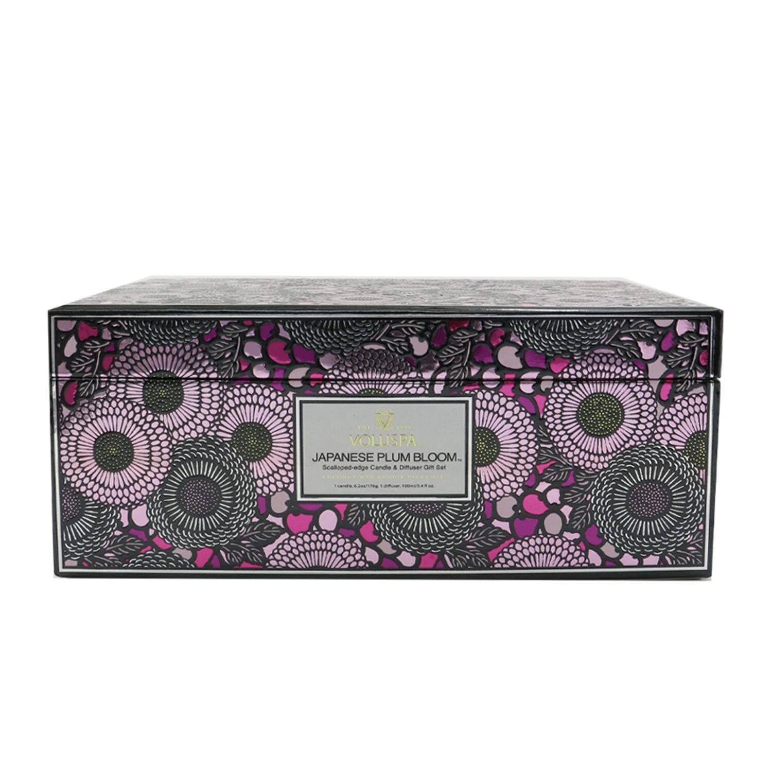 Voluspa Scalloped Edge Candle & Reed Diffuser Coffret – Japanese Plum Bloom 2pcs