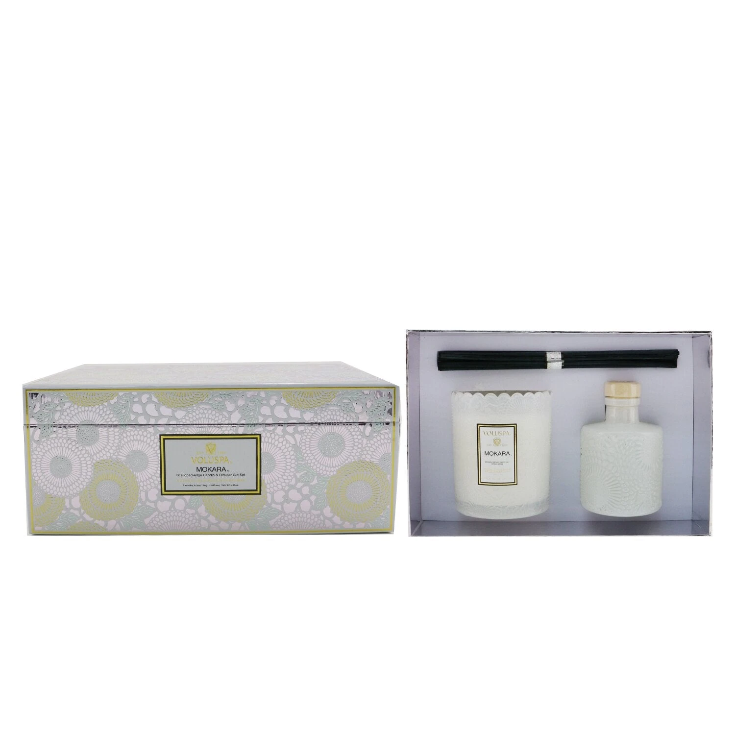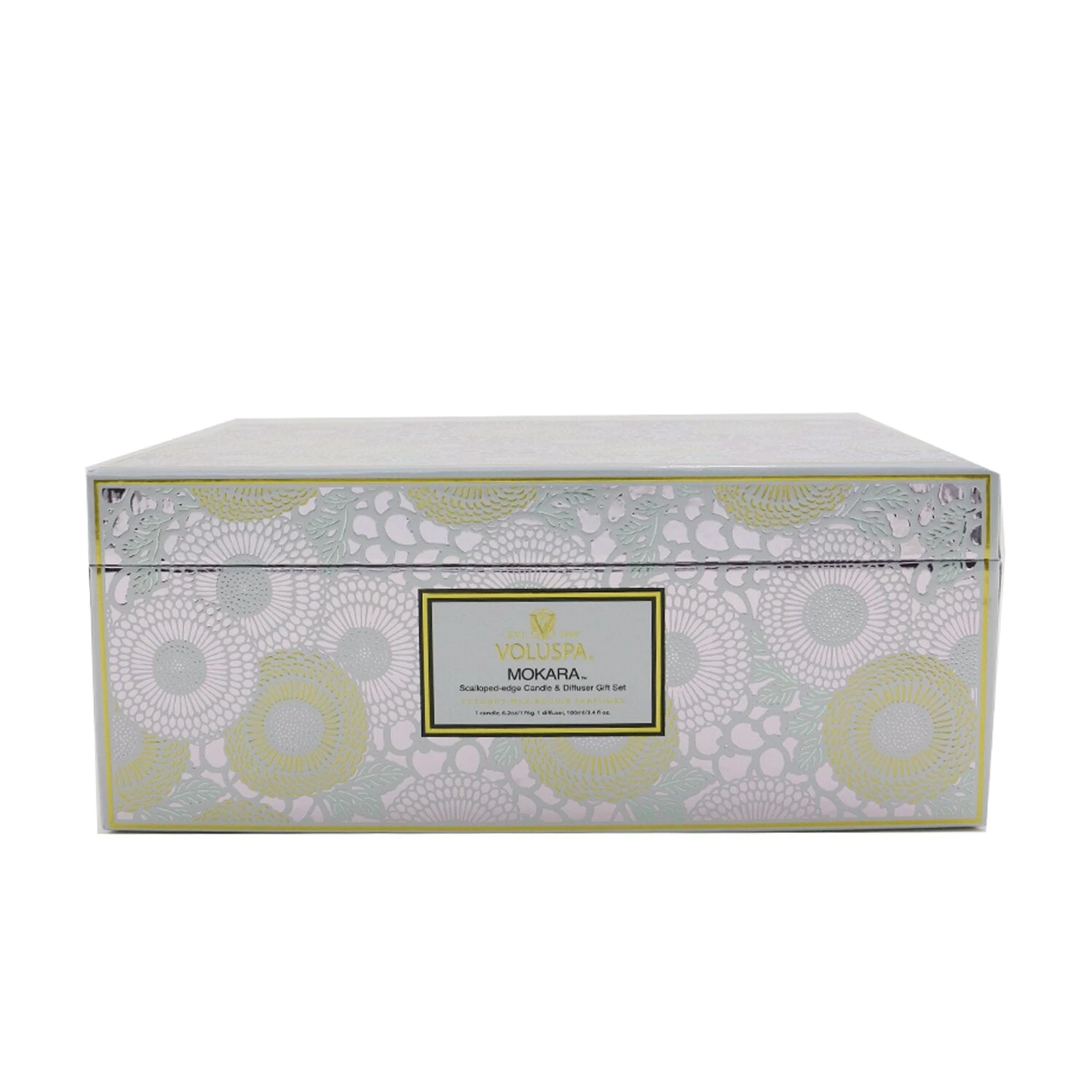 Voluspa Scalloped Edge Candle & Reed Diffuser Coffret – Mokara 2pcs